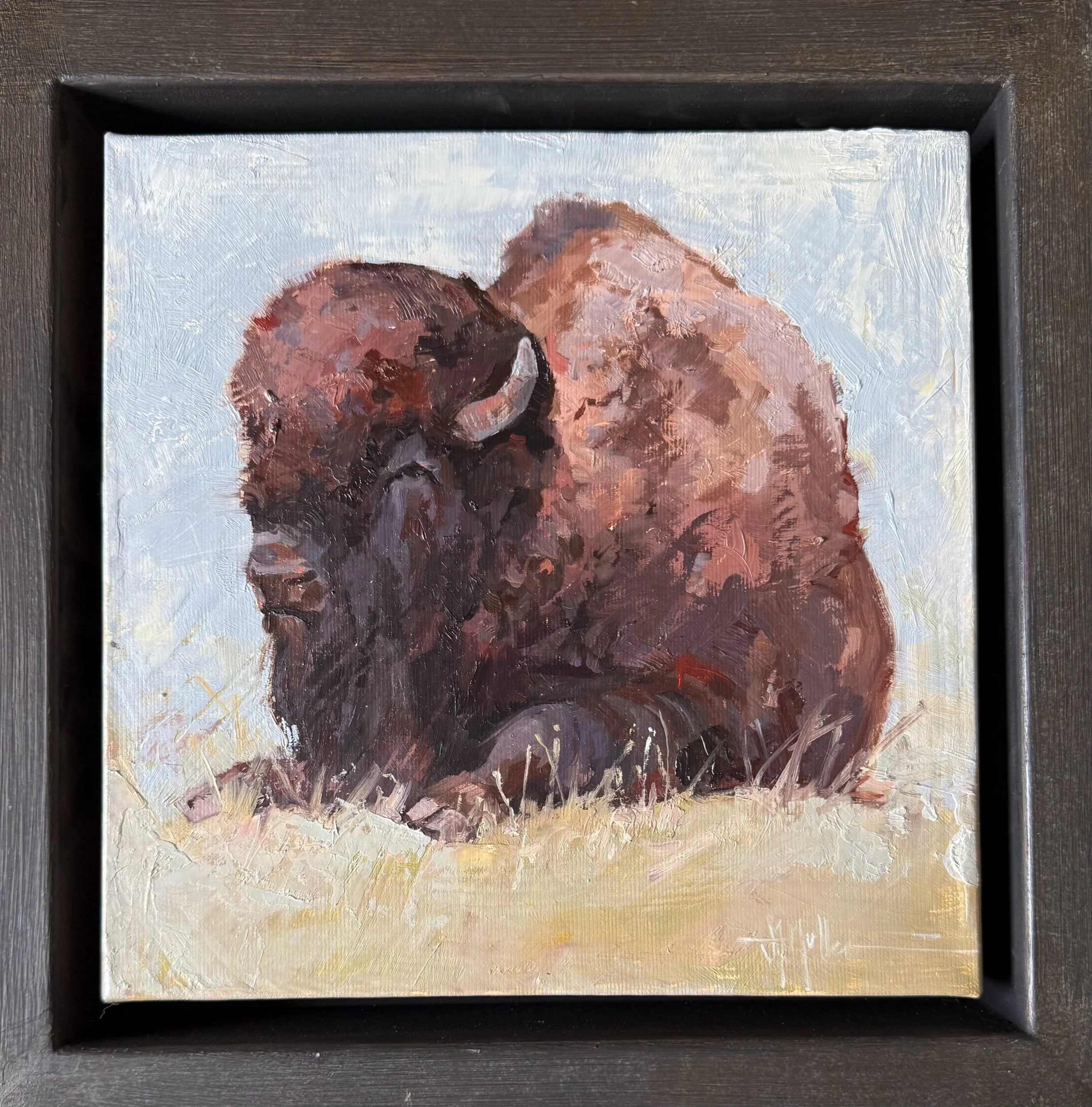 Shop › 10x10 Bison original Image 1 of 1 10x10 Bison original $700.00 Framed bison, original oil on linen. Add To Cart Added! Framed bison, original oil on linen.